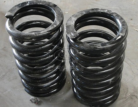 減振彈簧是振動篩中的一個必不可少的零部件。振動篩上的減振彈簧是連接篩體和底座的重要部分,在振動篩工作的過程中起到緩沖的作用,使物料可以在篩網上保持向前運動而不損傷振動篩。