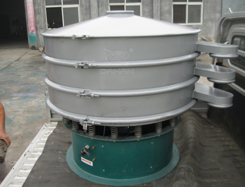 Φ1200型振動篩為1200mm直徑一層兩出口標準旋振篩,上半部為碳鋼材質,底座也為碳鋼材質。子母網分離式網架,底座為碳鋼材質。 1200型旋振篩價格是根據層數而定的,不同的層數價格是不一樣的,另外也可以特殊定做!