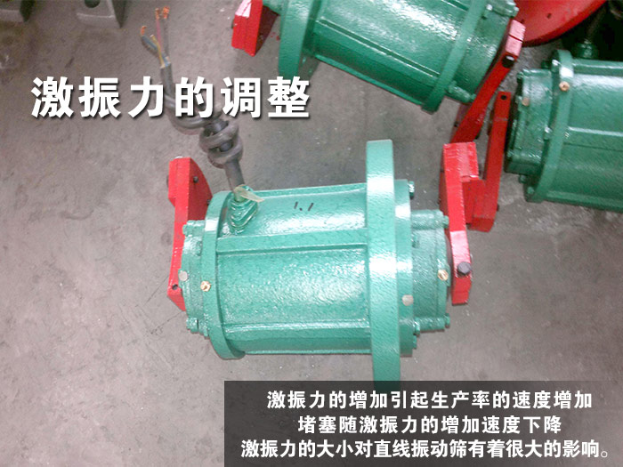 振動(dòng)電機(jī)是直線振動(dòng)篩的重要配件之一,它不僅僅影響篩分效率還會(huì)影響篩分精度,所以振動(dòng)電機(jī)的工作效率、激振力、功率等方面都需要注意,它的轉(zhuǎn)速要接近于工作頻率的激振力必須在所選的電機(jī)合成激振力的范圍,然后根據(jù)選擇工作頻率和激振力選擇振動(dòng)電機(jī)的功率。