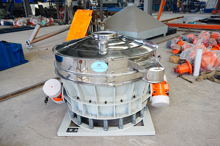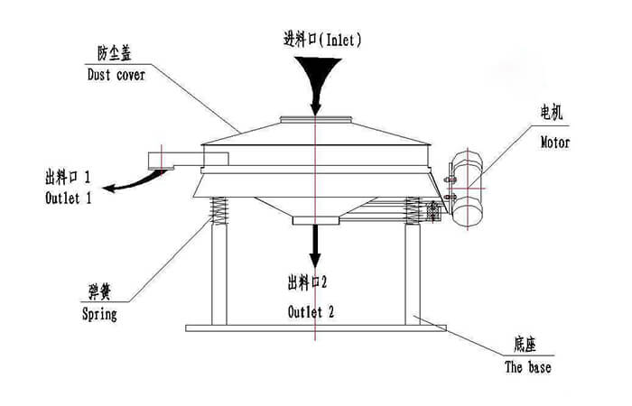 普通旋振篩:裝配一臺(tái)立式振動(dòng)電機(jī),利用立式振動(dòng)電機(jī)作為激振源,在電機(jī)的帶動(dòng)下物料在篩框做水平、垂直、傾斜的三維運(yùn)動(dòng)。通過(guò)不同目數(shù)的篩網(wǎng)過(guò)網(wǎng)完成篩分目的,具有自動(dòng)篩分排料的功能。