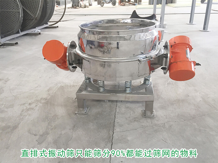 直排式振動(dòng)篩:一般裝配有一臺(tái)到兩臺(tái)臥式振動(dòng)電機(jī),分單振源和雙振源兩種,單振源作用到物料上主要產(chǎn)生上下振動(dòng),不具備自動(dòng)排料功能,雙振源能在篩面上產(chǎn)生渦旋運(yùn)動(dòng),具有自動(dòng)排料功能,是以振動(dòng)電機(jī)為激振源,在電機(jī)的帶動(dòng)下物料在篩框上做橢圓運(yùn)動(dòng),快速并往復(fù)的實(shí)現(xiàn)物料過(guò)網(wǎng)動(dòng)作。