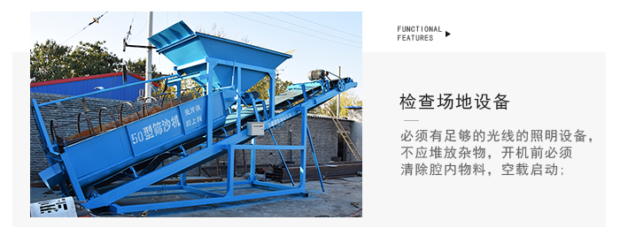 1.篩沙機在啟動前先用手旋轉轉子,檢查機器各部有無異常現象;